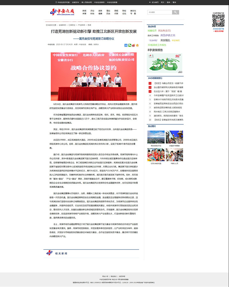 ——国元金控与芜湖签订战略协议》