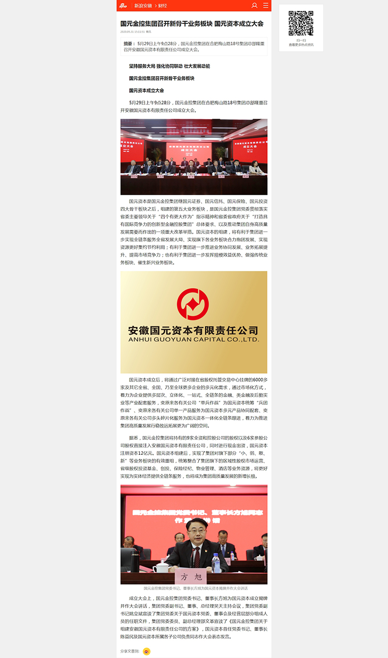 【媒体关注】新浪安徽刊发《壮大发展动能 星空官方网站-星空xingkong(中国) 召开新骨干业务板块 国元资本成立大会》