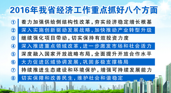 2015年,“十二五”胜利收官,全省上下克难攻坚、砥砺奋进、闯关夺隘,经济运行总体平稳、稳中有进、稳中趋好。2016年是全面建成小康社会决胜阶段的开局之年,也是推进结构性改革、实施“4105”行动计划的攻坚之年,做好经济工作的重要性不言而喻。
