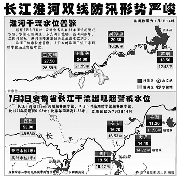长江、淮河干流防汛趋紧 安徽省部署双线防汛作战(图)