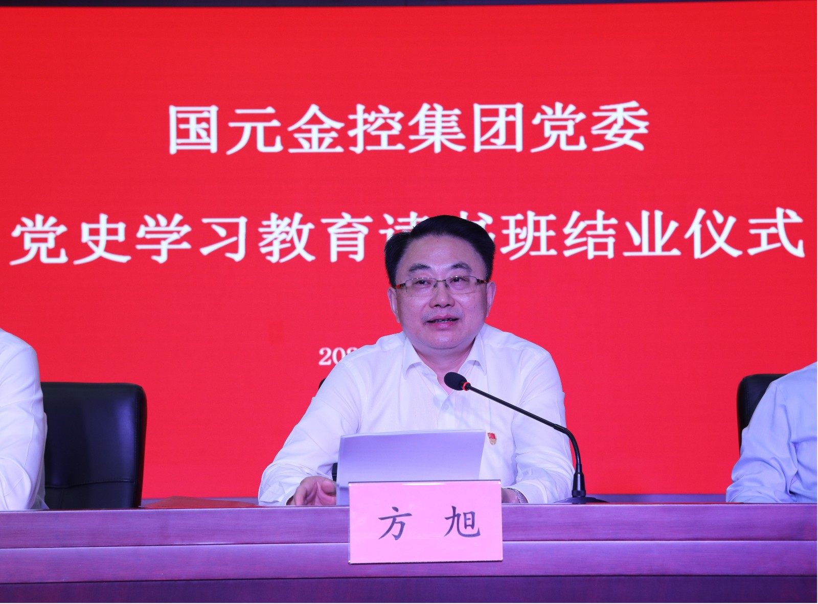 方旭在结业式上指出,集团党委举办此次党史学习教育读书班,通过个人自学、专题辅导、集中研讨、知识竞赛等方式,读原著、学原文、悟原理,进一步强化了理论武装、深化了思想认识、加强了党性锻炼、增强了发展信心。方旭强调,集团各级党组织要以此次读书班为新的起点,进一步把思想和行动统一到中央和省委决策部署上来,以更加有力的举措推动党史学习教育继续往深里走、往心里走、往实里走,确保取得实实在在成效。一要在深学细读上下功夫,做到学史明理,集团广大党员尤其是党员领导干部要进一步提高站位全面学,突出重点系统学,强化表率带头学,引领带动集团广大党员干部员工形成上行下效、整体联动的工作格局,不断掀起集团党史学习教育新热潮。二要在融会贯通上下功夫,做到学史增信,集团广大党员干部员工要深钻研,勤交流,重探索,将学习成效转化为应对挑战、抵御风险、克服困难、化解矛盾、解决问题、推动发展的工作思路和具体举措,在各自岗位上顽强拼搏,不断把为崇高理想奋斗的实践推向前进。三要在对照反思上下功夫,做到学史崇德,集团广大党员干部员工要在思想认识、精神状态、工作作风上对标学先进,反思找差距,立志谋赶超,持续深入推进“三在三比”岗位建功立业活动,在集团各领域、各板块、各层级推进形成“比学赶超帮”的良好氛围,共同汇聚推动集团改革创新、高质量发展的强大动能。四要在学以致用上下功夫,做到学史力行,集团广大党员干部员工要集中精力、全面发力、全员用力,确保学习高标准推进,同时持续聚焦为民办实事,同心追梦高质量发展,力争超额完成集团年度各项目标任务,为加快建设新阶段现代化美好安徽增光添彩。五要在强化组织上下功夫,做到严督实导,集团各级党组织要进一步强化政治担当,抓好谋划部署,坚持责任再压实,督导再精准,宣传再深入,不断巩固发展集团党史学习教育良好态势。