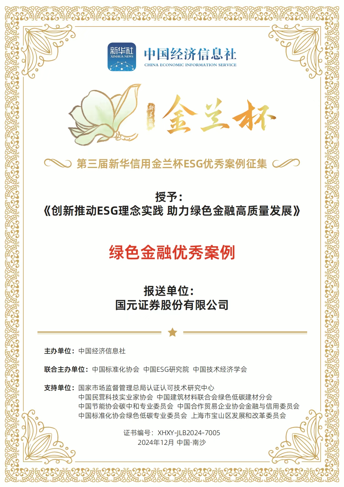2024年度第三届新华信用金兰杯ESG优秀案例-绿色金融优秀案例