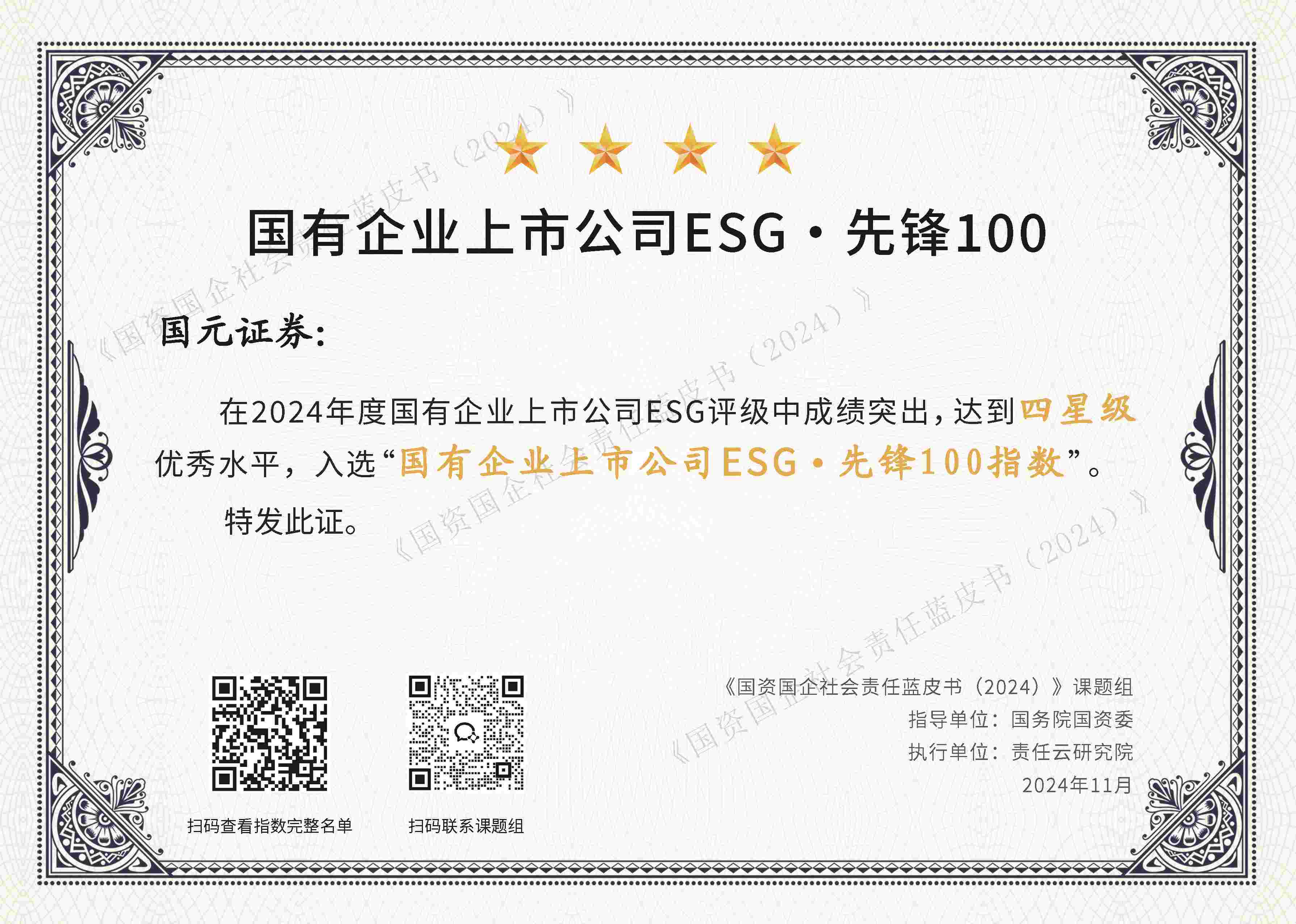 2024年度国有企业上市公司ESG先锋100指数
