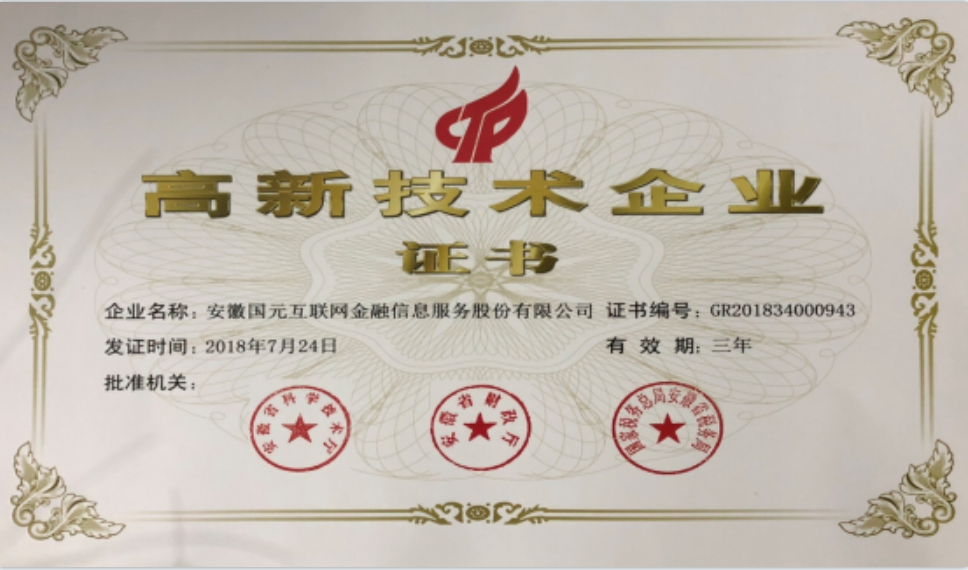 国元网金荣获“高新技术企业”称号