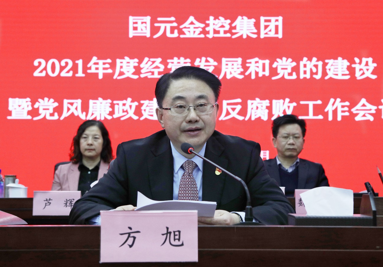 方旭指出,要充分肯定新发展业绩,着力增强高质量发展的信心决心。2020年是极不寻常、极具考验的一年,也是集团逆风破浪、开创新局的一年,集团上下始终坚持常态化战疫和实现年度目标“两手抓”、“双胜利”,凝心聚力、攻坚克难,全年实现总收入、利润总额分别逆势大幅增长21%、35%,超额完成省委省政府“全年夺胜利”目标任务,得到了省委省政府领导的充分肯定和亲切勉励。一是战疫情,在攻坚克难中育先机。集团上下始终坚持“外防输入、内防扩散”,落实防控责任有力有效,常态化疫情管控有章有法,全力驰援一线有声有色,助力复工经营有序有为,累计为抗疫一线捐赠医疗紧缺物资、全省45万医护人员疫情专属保险保障等折合人民币1699万元,居省属企业捐赠前列,交出了一份厚重提气的国元抗疫答卷。二是推改革,在转型升级中求突破。集团各级取得了一系列重大改革突破,深化金融供给侧改革壮大实力,深化组织架构改革提升效能,深化三项制度改革激发活力,进一步做大金融主业、优化传统板块、布局新兴业态,全年股权投资战新等产业累计突破60亿元,实现了各项改革由局部探索到系统集成的历史性转变。三是抓创新,在深挖潜能中找出路。集团各级大力推进业务创新、服务创新、协同创新,持续“补短板、锻长板、塑卓越”,全年长三角区域合作项目超270亿元,集团旗下省股交中心累计挂牌企业7320家,数量跃居全国第一,被写进2021年省政府《政府工作报告》,获省政府通报表扬,服务国家战略和全省大局进一步提效。四是强管控,在优化治理中提质效。集团各级以全面深化卓越绩效管理为抓手,突出规划引领、集团管控、风险防控和品牌铸造,坚定不移抓管理、强基础、促发展,积极申报并成为我省首批第五届“安徽省人民政府质量奖”拟奖励名单的金融单位,国元品牌影响力进一步提升,管理质效实现全方位和大力度跃升。五是勇担当,在服务大局中善作为。集团各级始终践行金融初心使命,有序推动长三角一体化发展国资百企联盟顺利成立并被推选为联席理事长单位,全年为实体经济提供投融资超1300亿元,为省内外中小微企业提供投融资近400亿元,国元保险在2020年夏季特大洪涝灾害中累计赔付全省受灾户19.7亿元,做到了服务国家战略有力度、服务实体经济有广度、服务抗洪救灾有温度。六是强党建,在引领发展中筑堡垒。集团各级党组织始终坚持党要管党、全面从严治党,政治思想建设持续强化,国企党建创新稳步提升,基层党建工作扎实有效,纪律作风建设全面从严,集团班子成员先后赴省内外分支机构调研督导、深入宣讲70余次,2个“领航”计划纳入省国资委党委培育库,1个“领航”计划纳入省级培育库,集团上下机制创新力、组织战斗力、廉洁保障力进一步提升。
