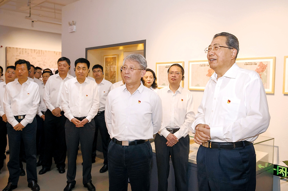 7月16日,省委书记李锦斌、党史学习教育中央第三指导组组长沙海林与省委办公厅综合调研室党支部全体党员一起参观“初心映江淮——庆祝中国共产党成立100周年主题展”。
